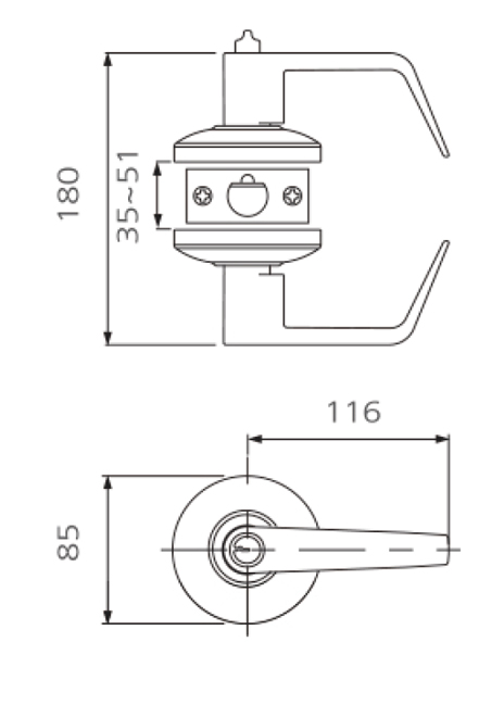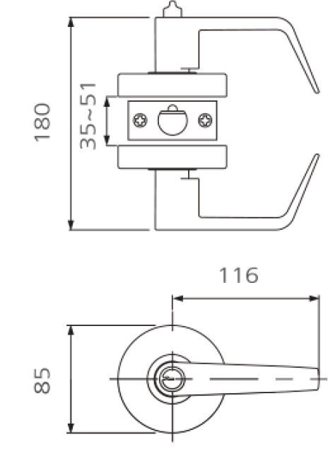• Door thickness: 1-3/8" to 2" (35-51mm) standard.