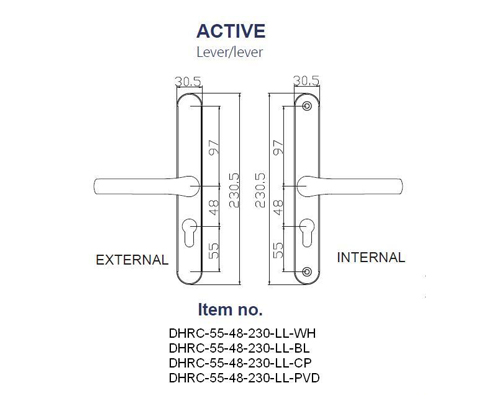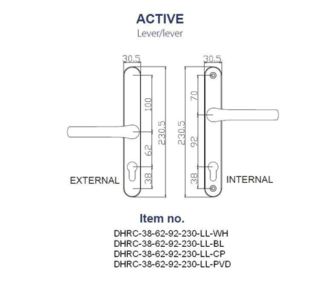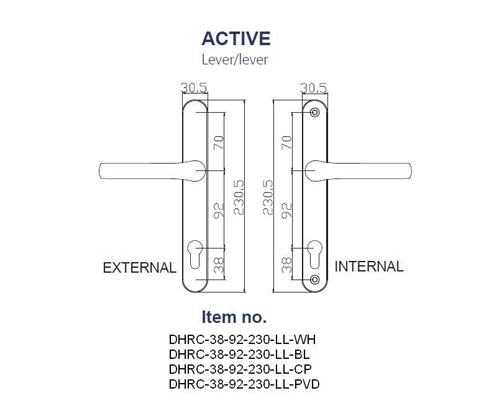 Lever/lever to suit multipoint locks with 92mm Pz/centers & 92/62mm Pz/centers