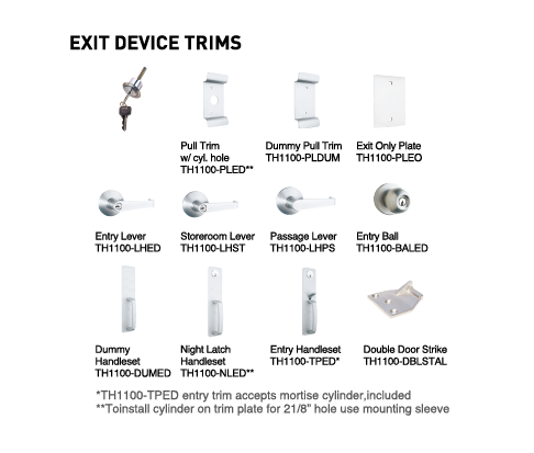 SURFACE VERTICAL ROD TH1100EDSV surface vertical rod panic device is the perfect choice for double doors without mullions. reversible for right or left hand doors, they are ideal for new construction or renovations. our EDSV panics can be used in conjunction with any of our exit device trims listed below. Grade - ANSI A156.3 Grade 2 Warranty - 10 years TH1100EDSV Specifications